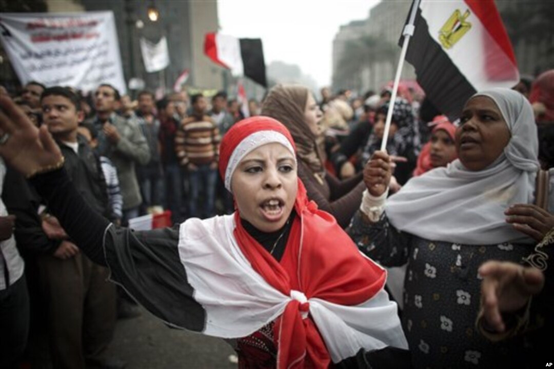 Egyptian women protest in Tahrir Square in Cairo, Egypt, Saturday, Nov. 26, 2011. The election begins Monday Nov. 28, and are staggered over multiple stages that conclude in March. The military said it would extend the voting period to two days for each r