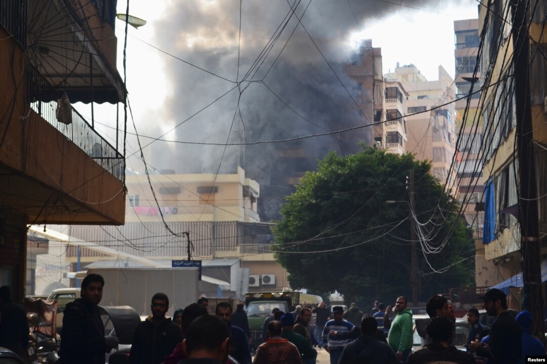 Fumo surge do local da explosão em Haret Hreik, Beirute, Jan. 21, 2014.