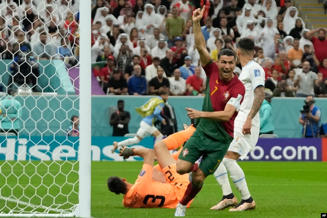 Cristiano Ronaldo celebra golo de Portugal contra o Uruguai. Portugal ganhou o Uruguai por 2-0, em jogo do grupo H, no Estádio Lusail, Doha, Qatar. Nov. 28, 2022